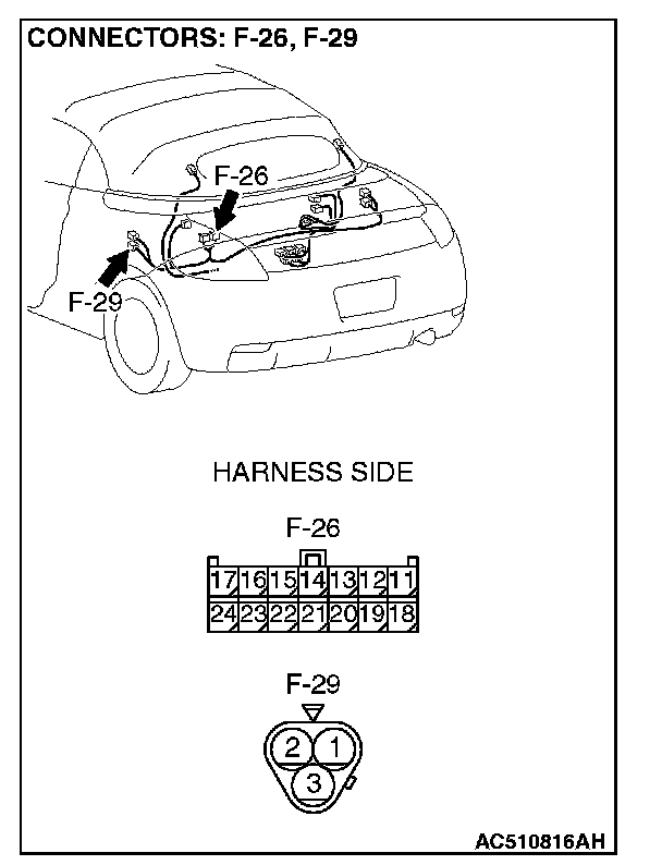 STEP 10. Check the harness between convertible top control module connector F-26 (terminal 14) and convertible top position switch connector F-29 (terminal 1).