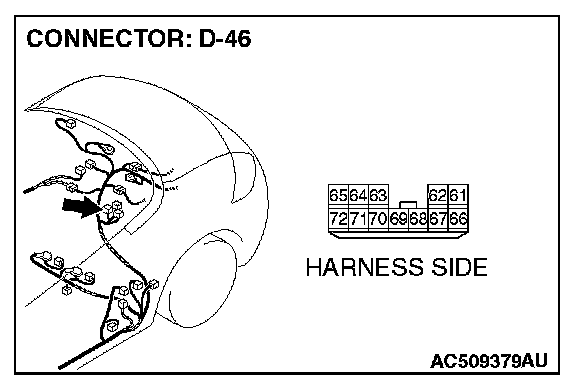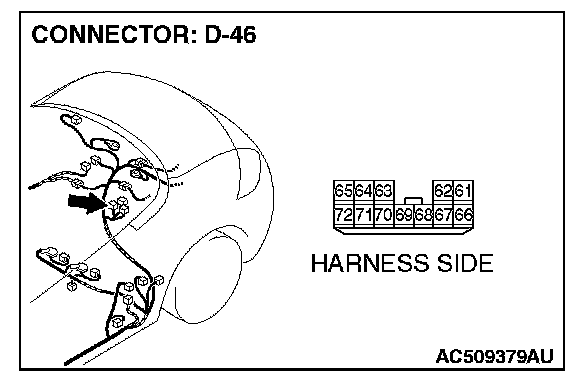 1. Disconnect convertible top control module connector D-46, and measure at the wiring harness side.