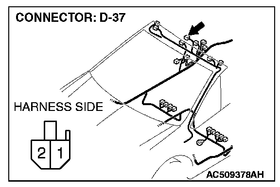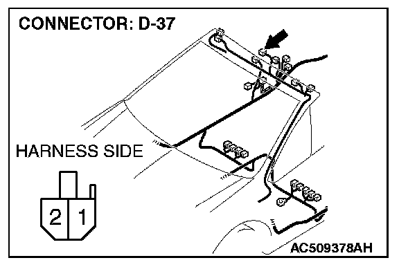 STEP 6. Check power window motor (quarter: RH) connector D-37 for loose, corroded or damaged terminals, or terminals pushed back in the connector.