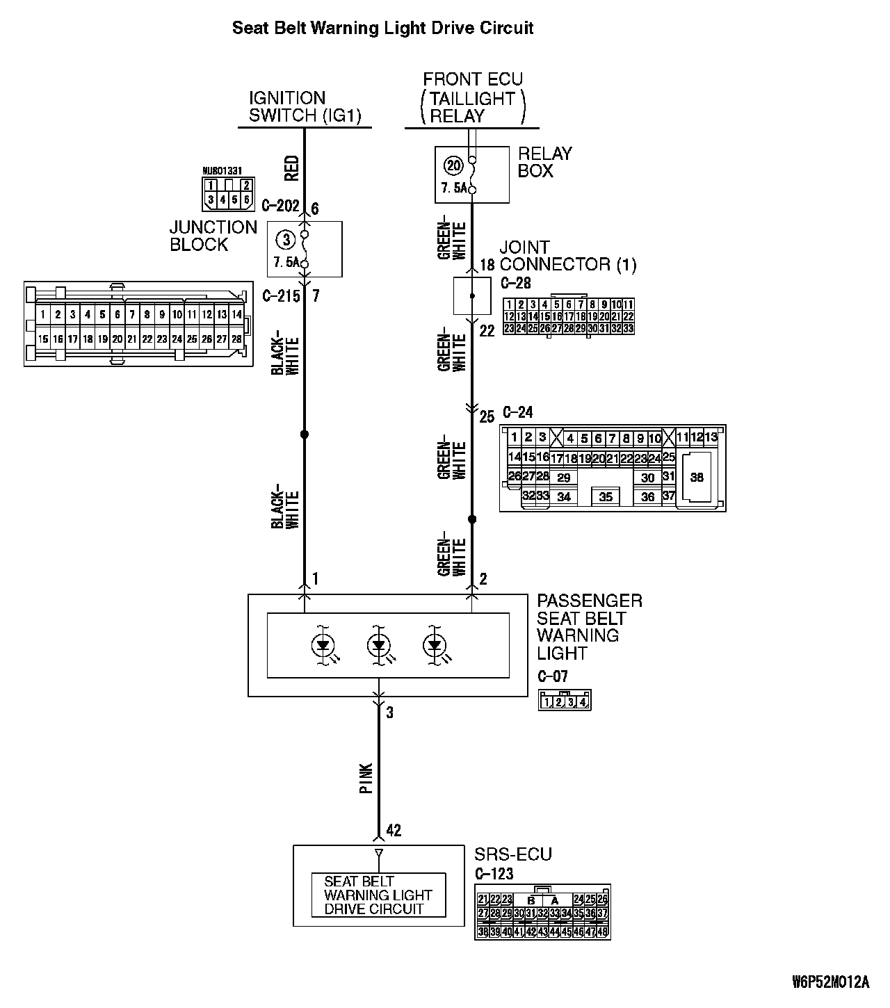 - Power for the passenger seat belt warning light is supplied from the ignition switch (IG1).