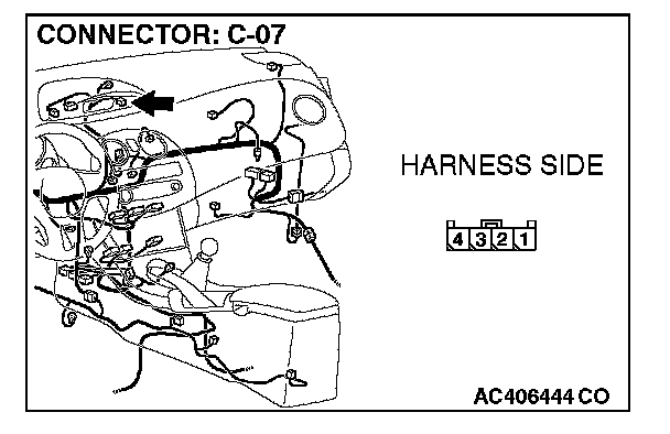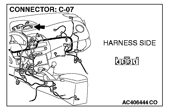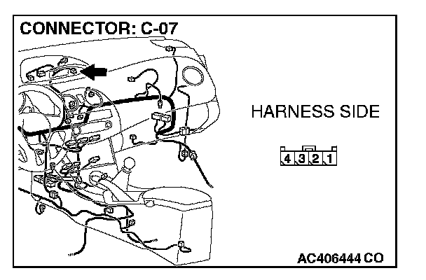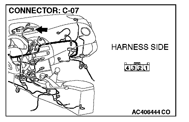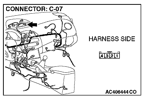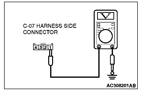 2. Measure the voltage between C-07 harness side connector terminal 1 and body ground.