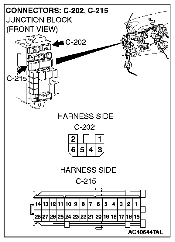 NOTE: After inspecting intermediate connectors C-202 and C-215 inspect the wiring harness. If intermediate connectors C-202 and C-215 are damaged, repair or replace them. Refer to Harness Connector Inspection. Then go to Step 10.