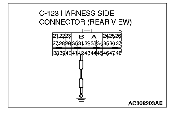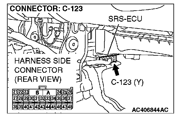 2. Disconnected the SRS-ECU connector C-123, and measure at the wiring harness side.