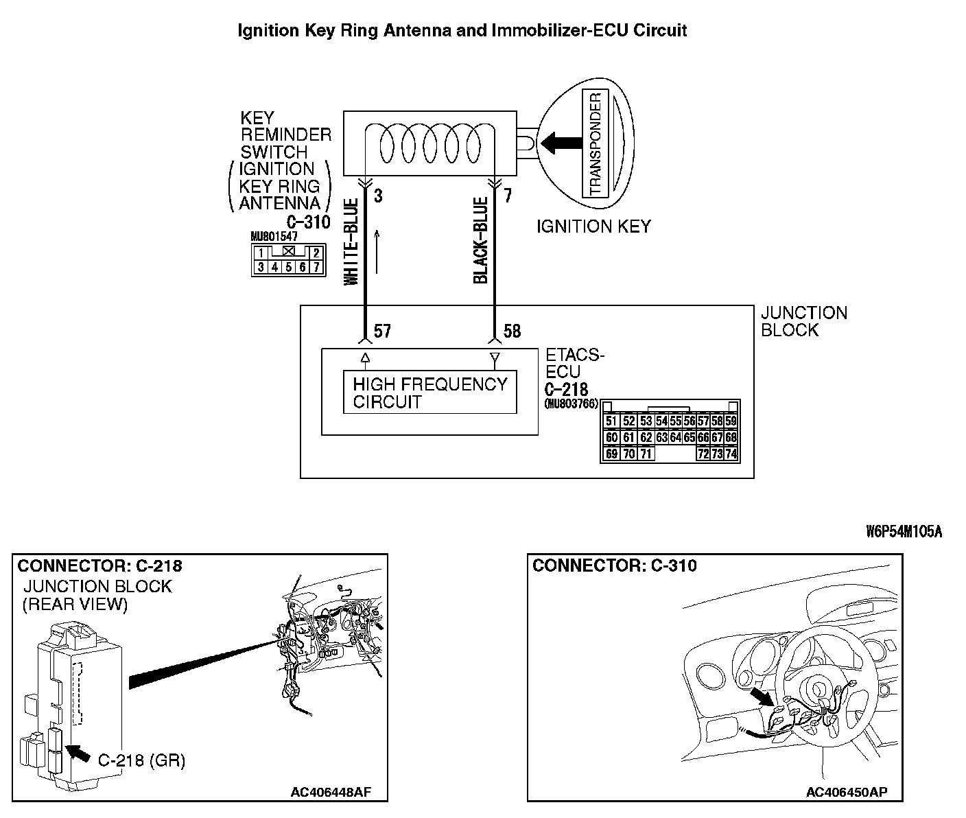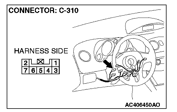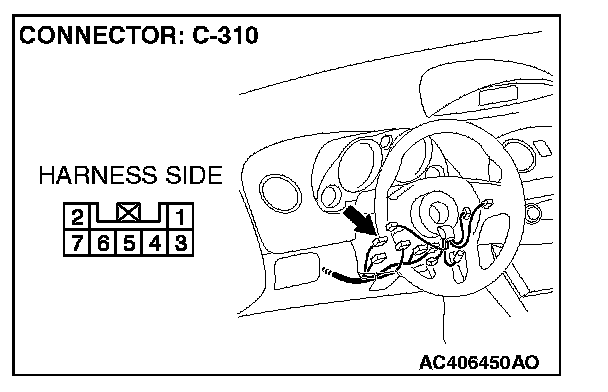 STEP 6. Check the wiring harness between ETACS-ECU connector C-218 (terminal 57 and 58) and key reminder switch (ignition key ring antenna) connector C-310 (terminal 3 and 7).