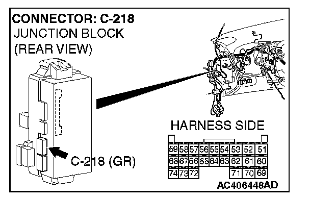 STEP 5. Check ETACS-ECU connector C-218 and key reminder switch (ignition key ring antenna) connector C-310 for loose, corroded or damaged terminals, or terminals pushed back in the connector.