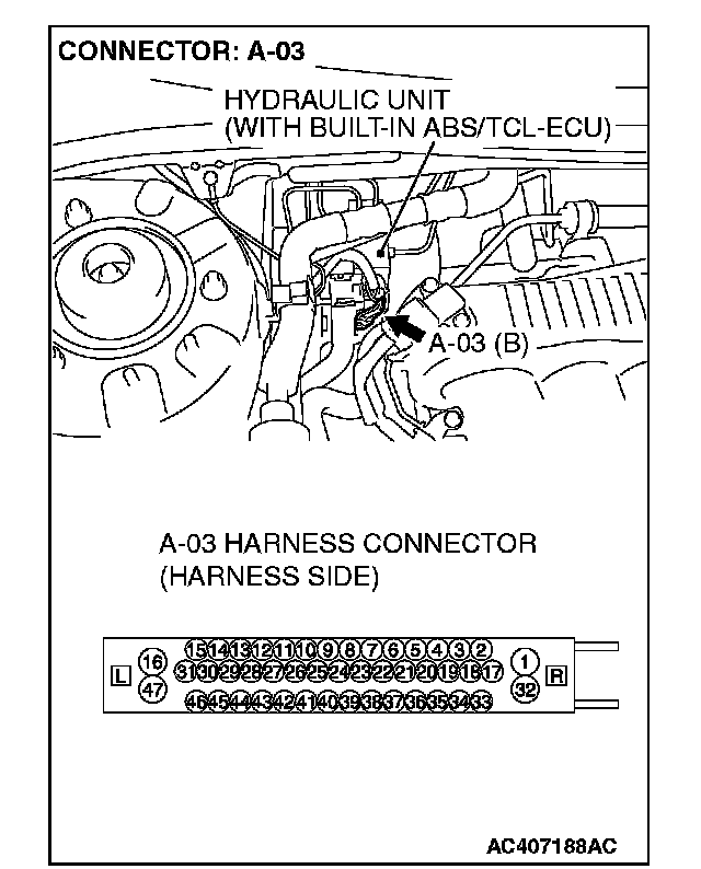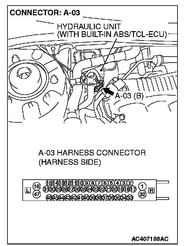 STEP 6. Measure the resistance at the ABS/TCL-ECU connector A-03.