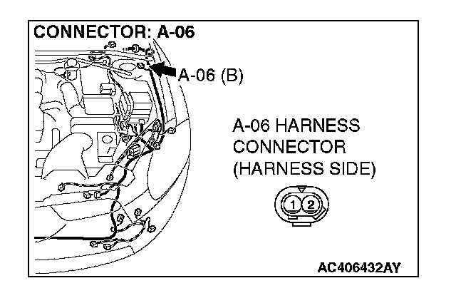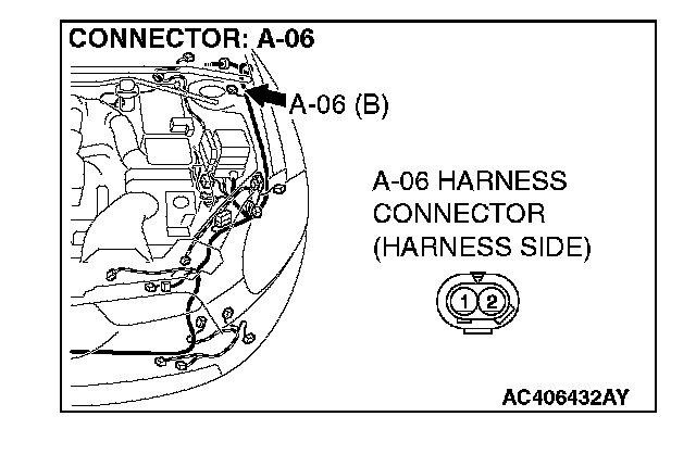 STEP 7. Check ABS/TCL-ECU connector A-03 and wheel speed sensor [front: LH] connector A-06 for loose, corroded or damaged terminals, or terminals pushed back in the connector.
