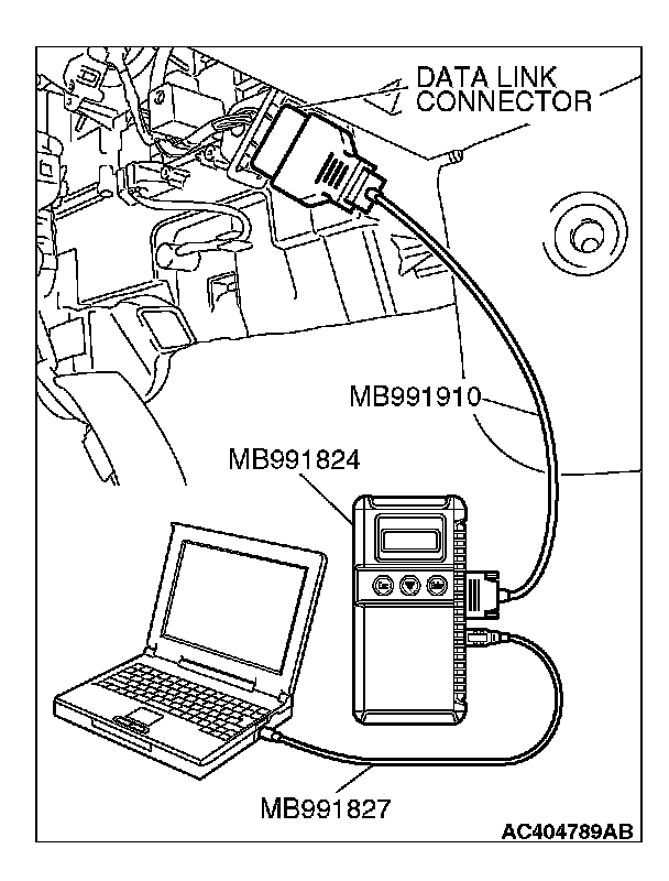 (1) Connect scan tool MB991958 to the data link connector.
