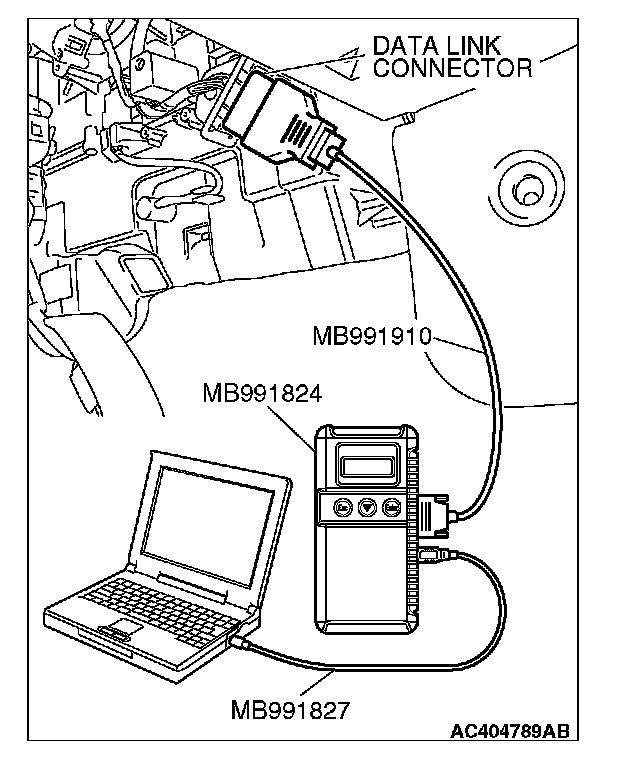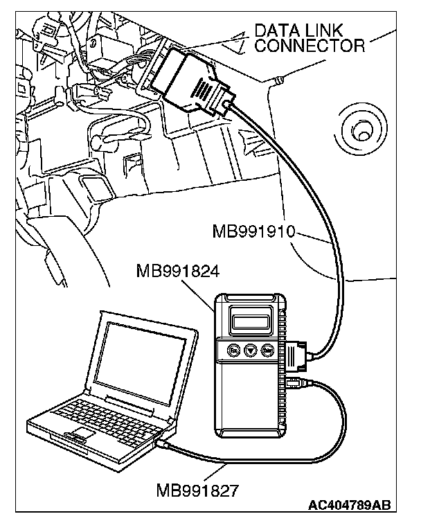 CAUTION: To prevent damage to scan tool MB991958, always turn the ignition switch to the "LOCK" (OFF) position before connecting or disconnecting scan tool MB991958.