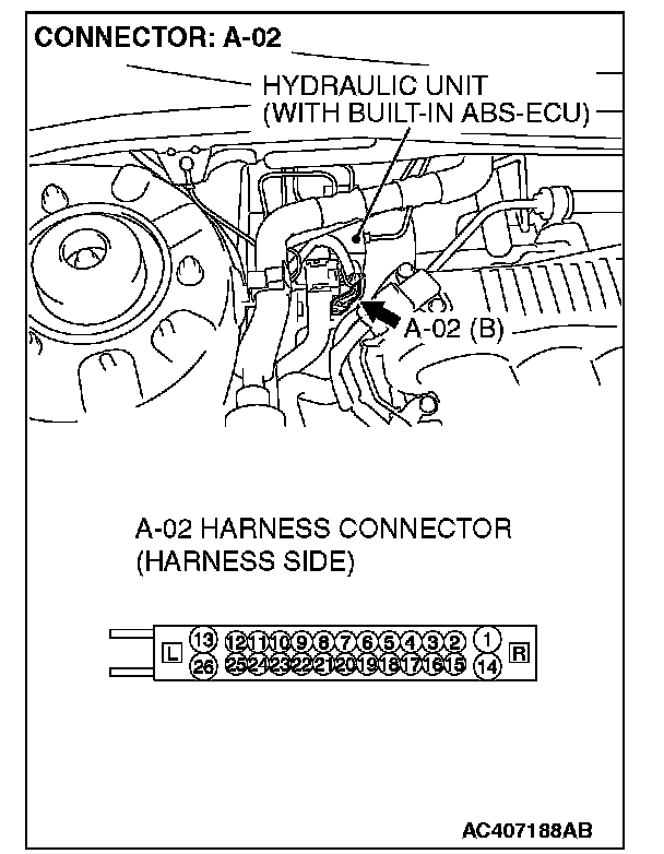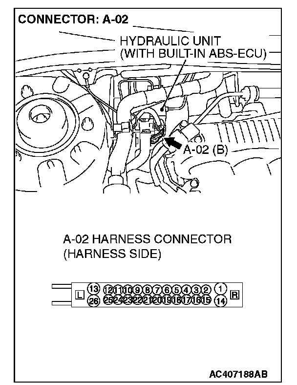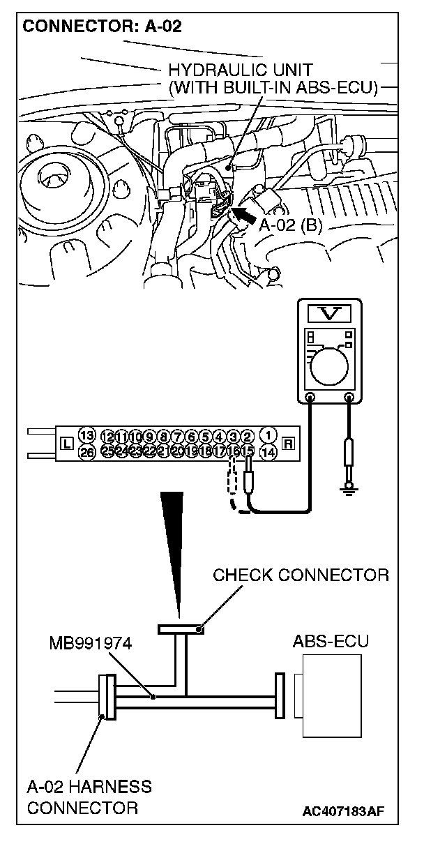 STEP 4. Measure the voltage at ABS-ECU connector A-02.