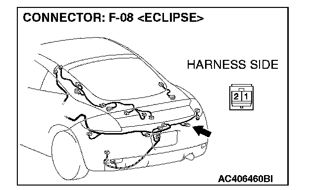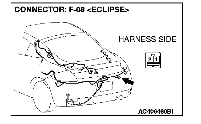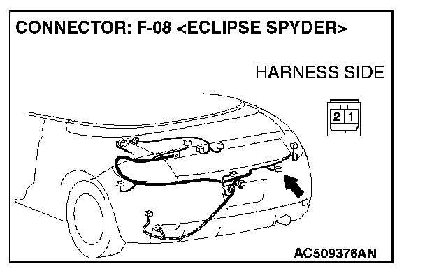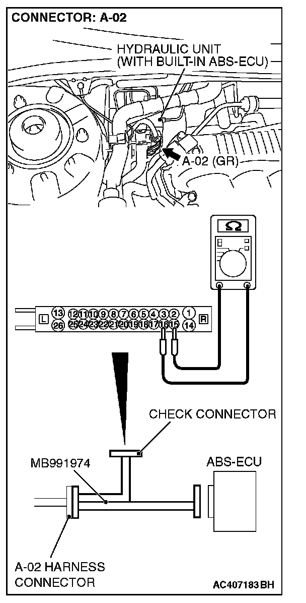 (1) Disconnect the connector A-02, and connect special tool MB991974 to the wiring harness-side connector.
