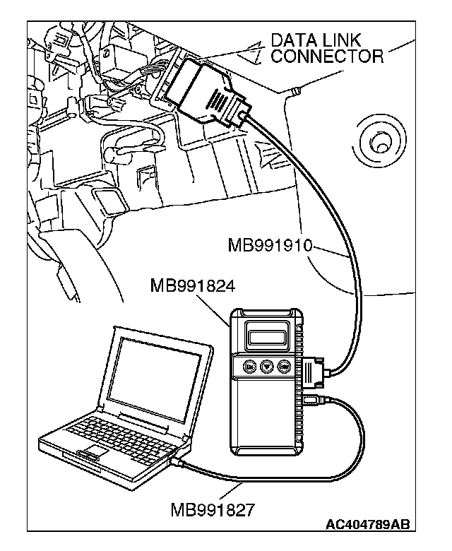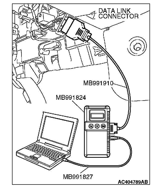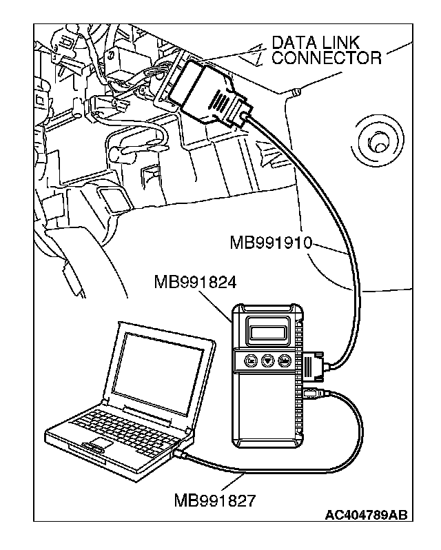 CAUTION: To prevent damage to scan tool MB991958, always turn the ignition switch to the "LOCK" (OFF) position before connecting or disconnecting scan tool MB991958.