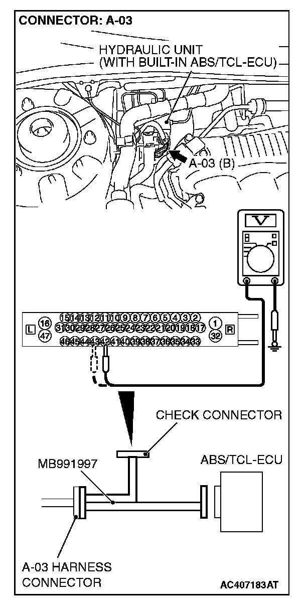 STEP 4. Measure the voltage at ABS/TCL-ECU connector A-03.