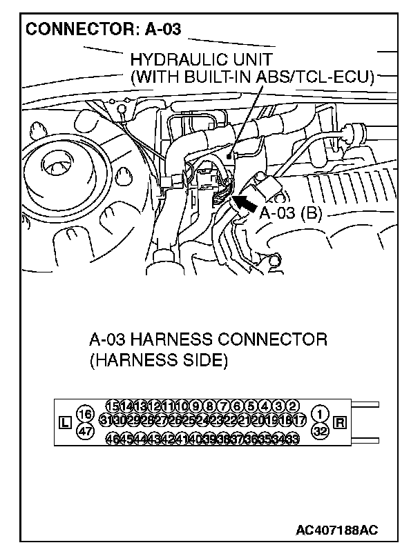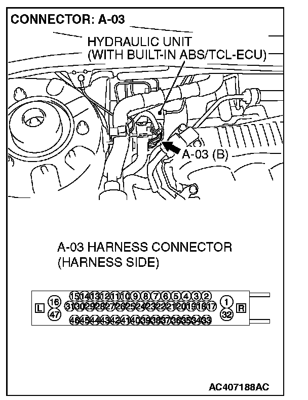 STEP 6. Measure the resistance at the ABS/TCL-ECU connector A-03.