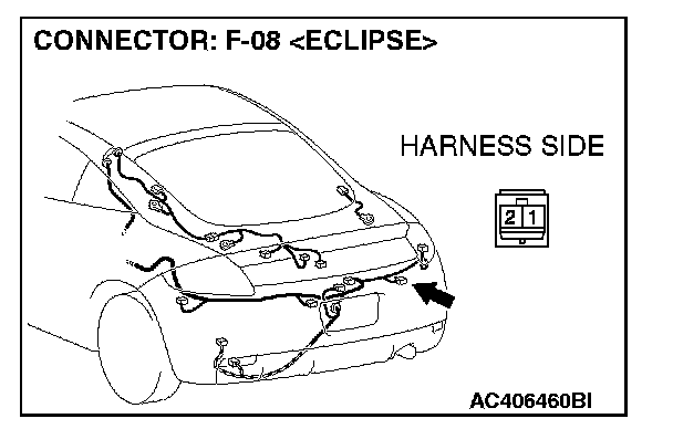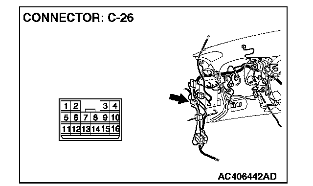 STEP 7. Check ABS/TCL-ECU connector A-03, intermediate connector C-26 and wheel speed sensor [rear: RH] connector F-08 for loose, corroded or damaged terminals, or terminals pushed back in the connector.