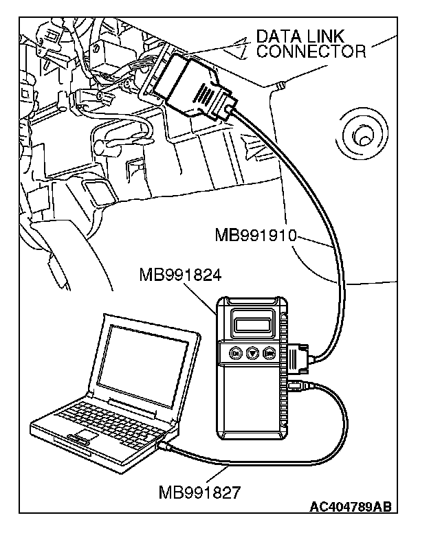 (1) Connect scan tool MB991958 to the data link connector.