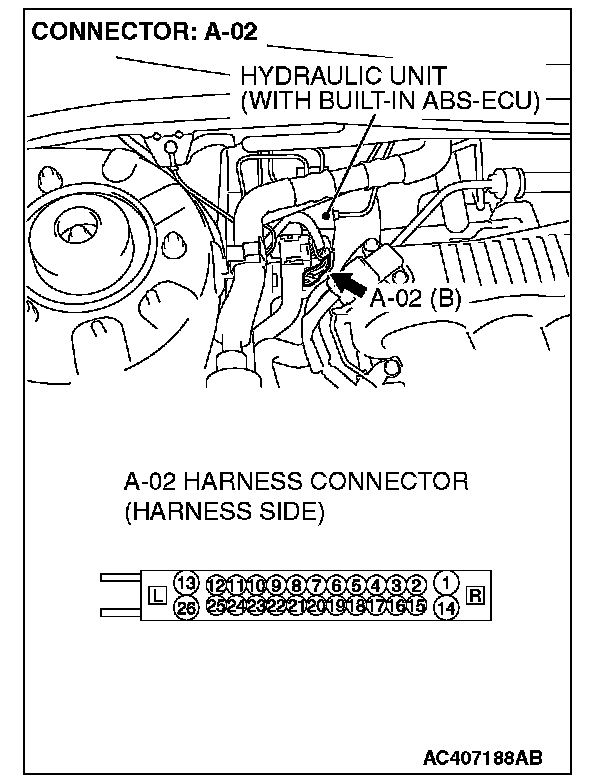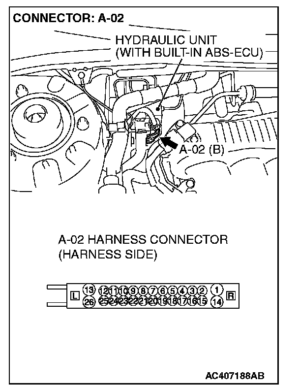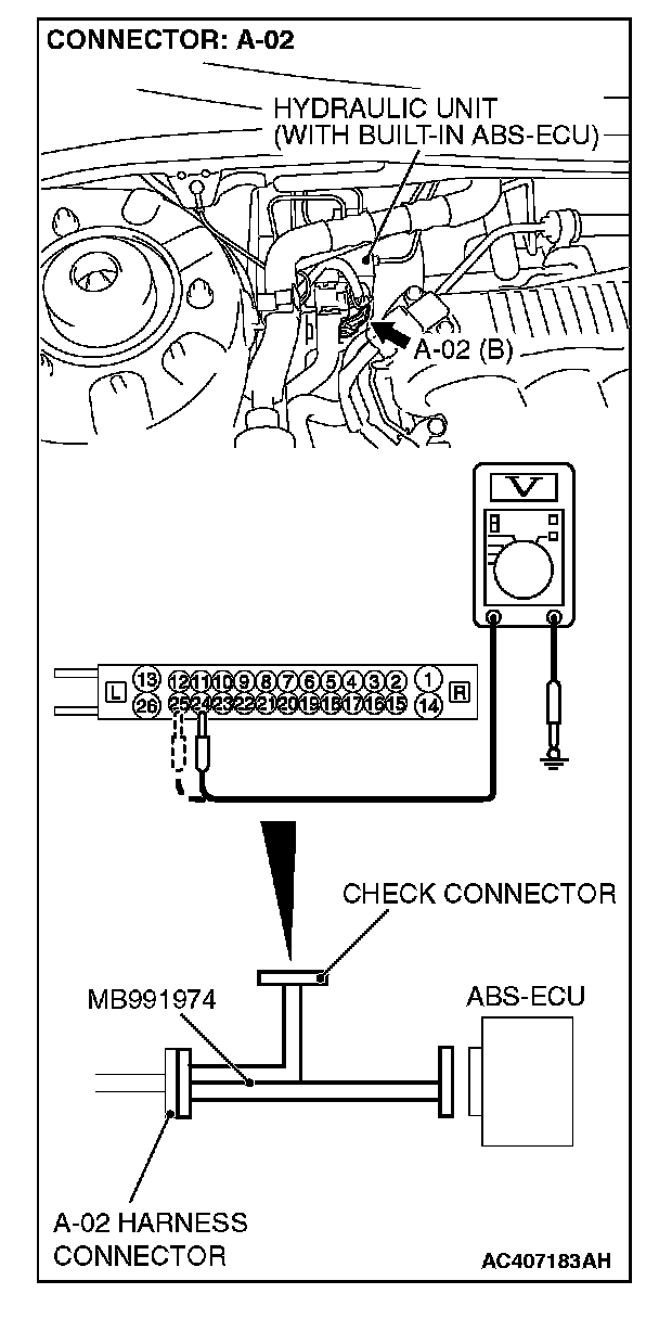 STEP 4. Measure the voltage at ABS-ECU connector A-02.