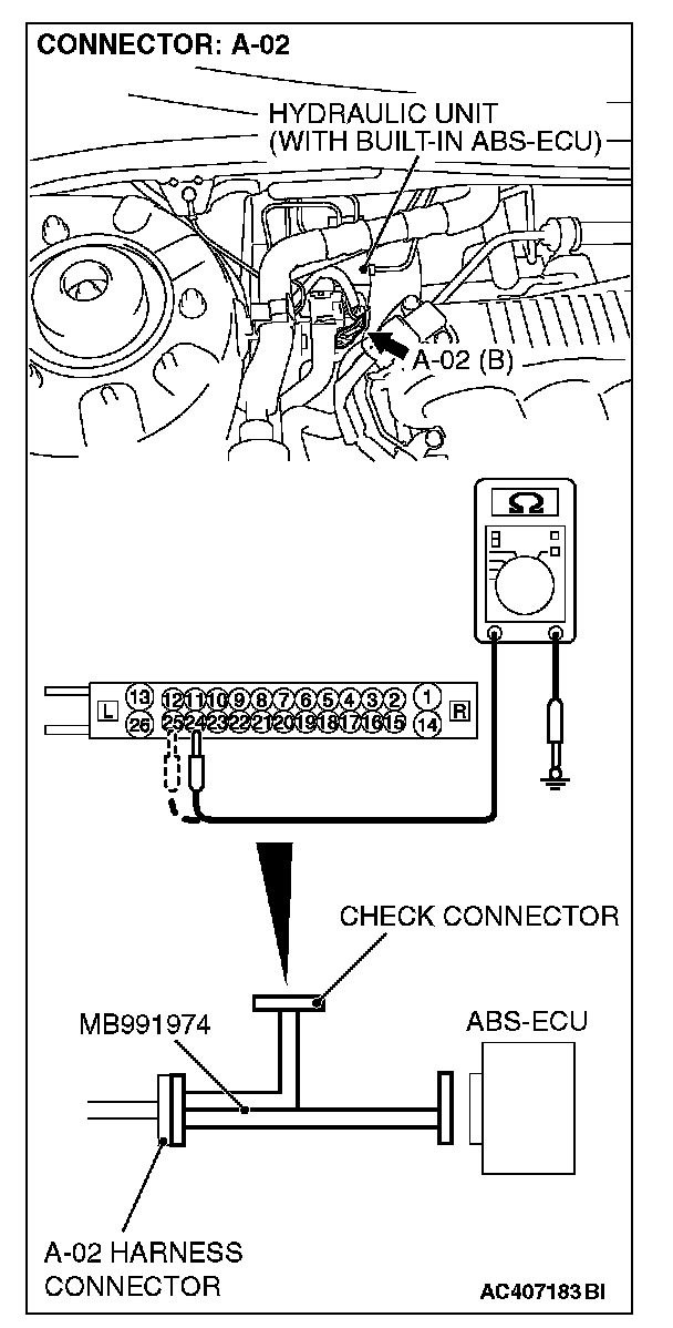 NOTE: Do not connect special tool MB991974 to the ABS-ECU.