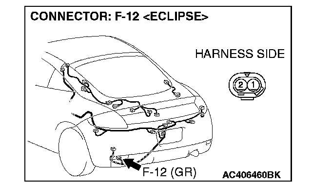STEP 8. Check the harness wires between ABS-ECU connector A-02 (terminal 24, 25) and wheel speed sensor [rear: LH] connector F-12 (terminal 1, 2).