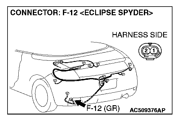 STEP 7. Check ABS-ECU connector A-02, intermediate connector C-26 and wheel speed sensor [rear: LH] connector F-12 for loose, corroded or damaged terminals, or terminals pushed back in the connector.