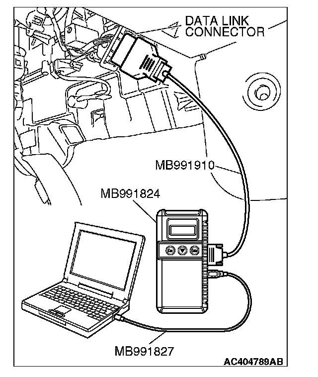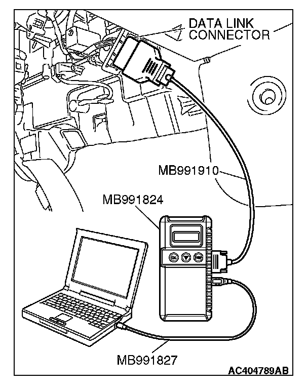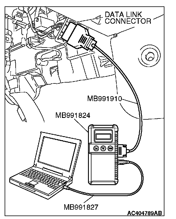 (1) Connect scan tool MB991958 to the data link connector.