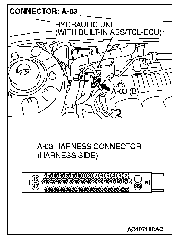 STEP 6. Measure the resistance at the ABS/TCL-ECU connector A-03.