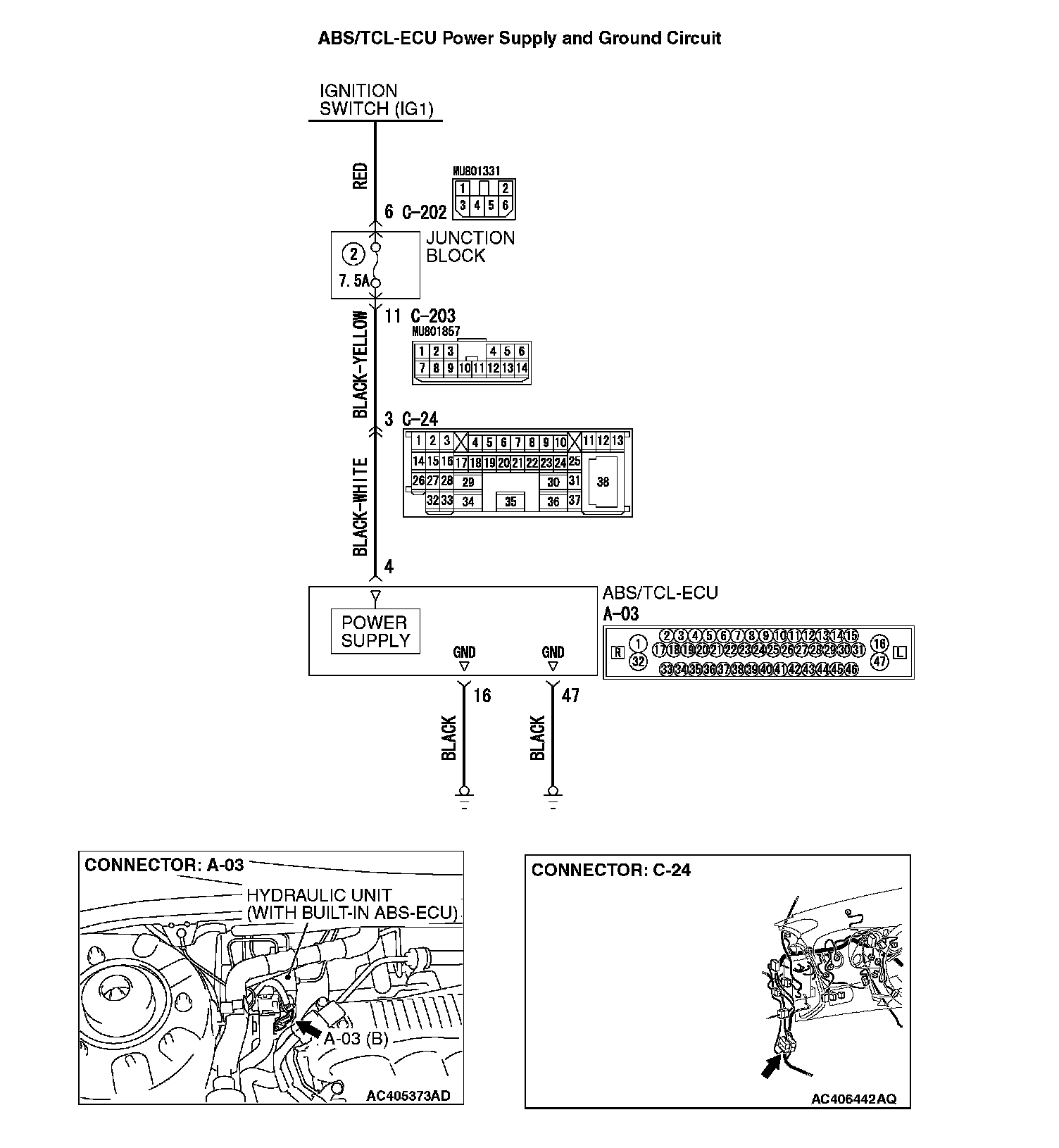 ^ ABS/TCL-ECU connector A-03
