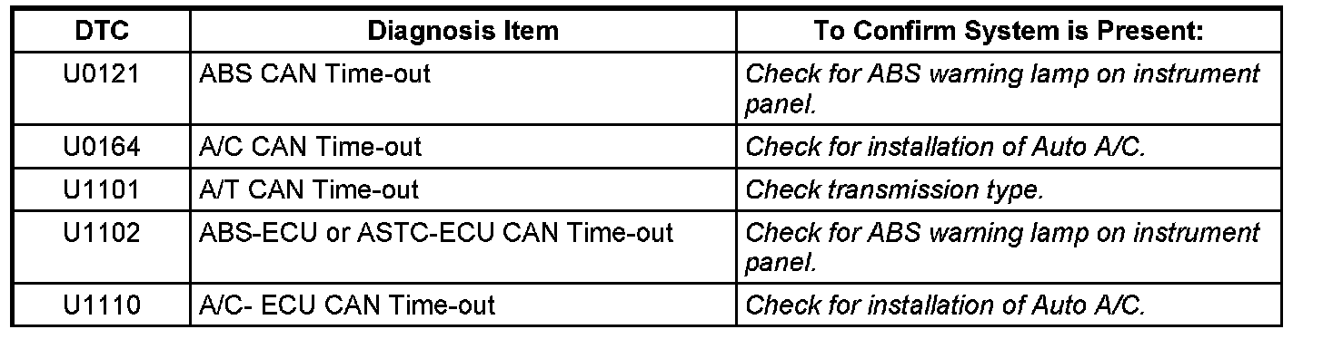 Controller Area Network (CAN) Communication-Related DTC (U-Code) Table