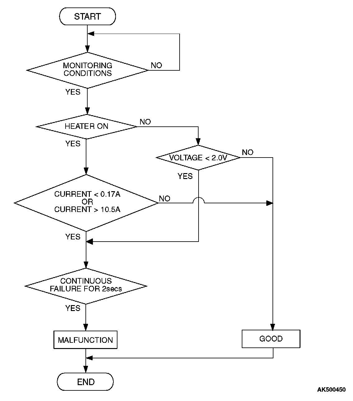 - The cylinder 1, 4 heated oxygen sensor (rear) heater current has continued to be lower than 0.17 ampere for 2 seconds.