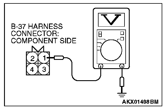 STEP 3. Measure the power supply voltage at cylinder 1, 4 heated oxygen sensor (rear) harness side connector B-37.