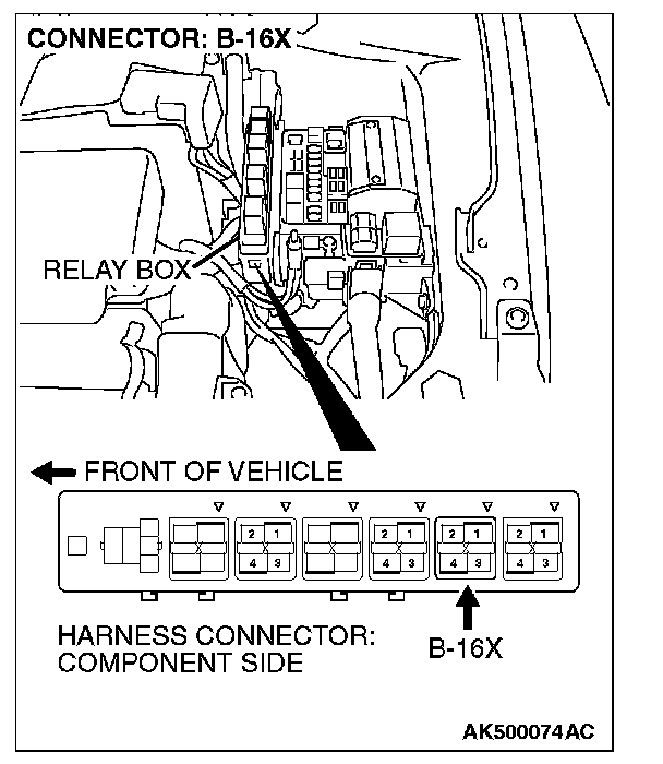 STEP 4. Check harness connector B-16X at the MFI relay for damage.