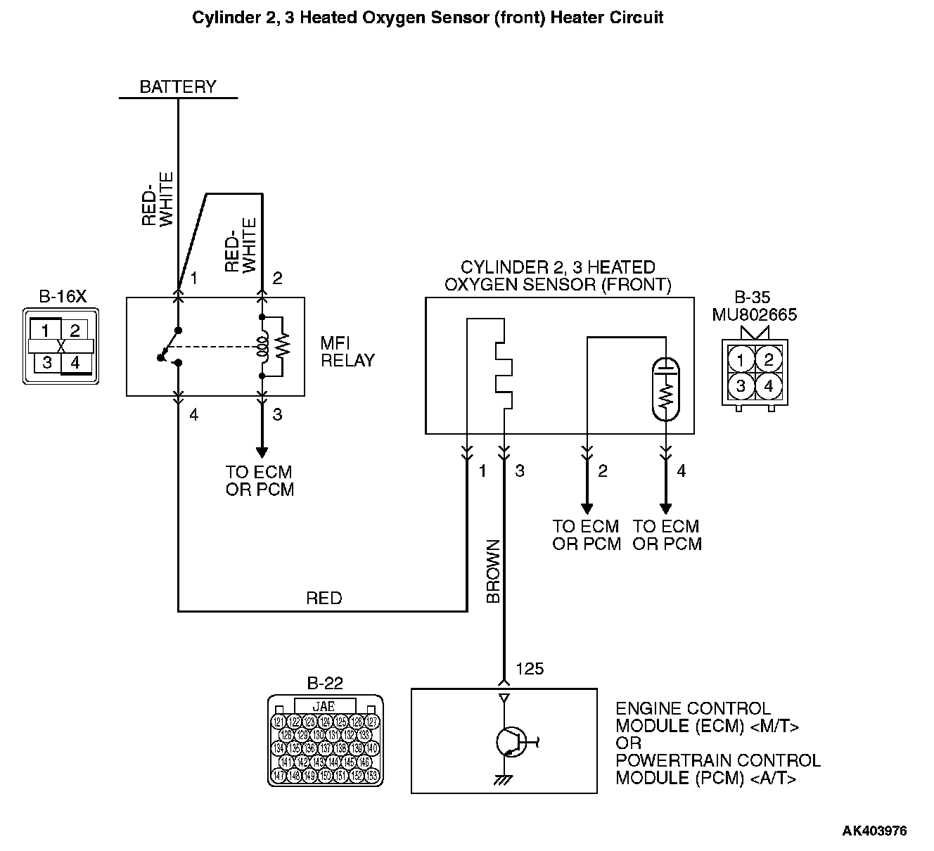 - Power is supplied from the MFI relay (terminal No. 4) to the cylinder 2, 3 heated oxygen sensor (front) heater.