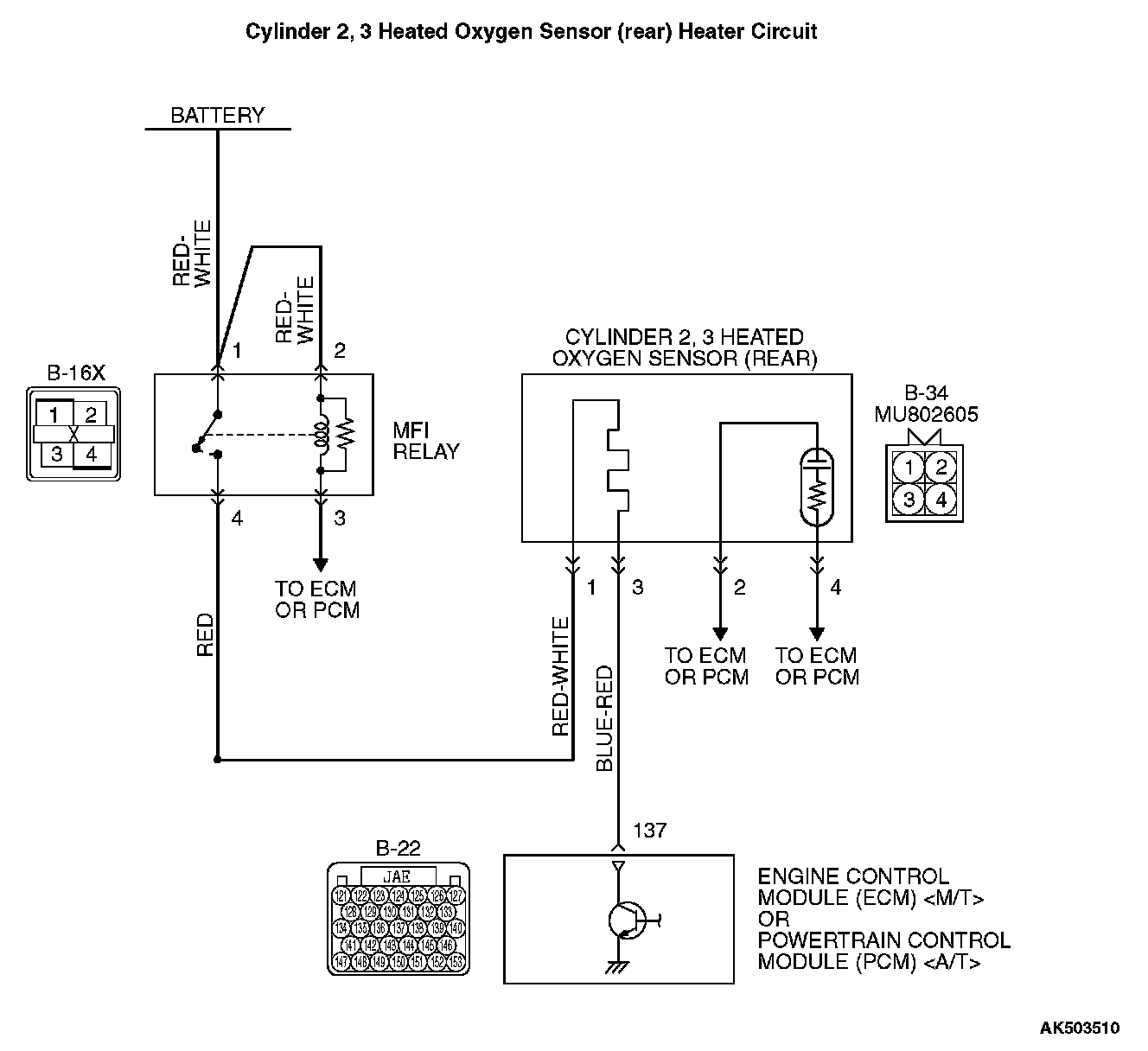 - Power is supplied from the MFI relay (terminal No. 4) to the cylinder 2, 3 heated oxygen sensor (rear) heater.