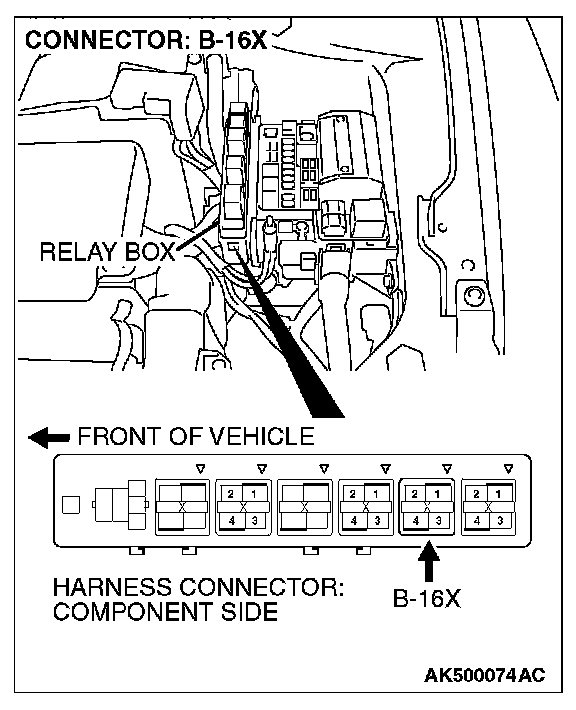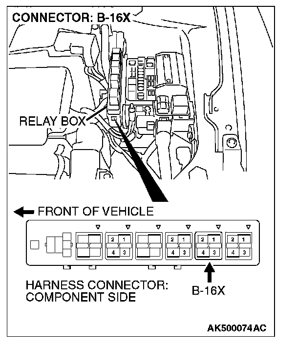 STEP 4. Check harness connector B-16X at the MFI relay for damage.