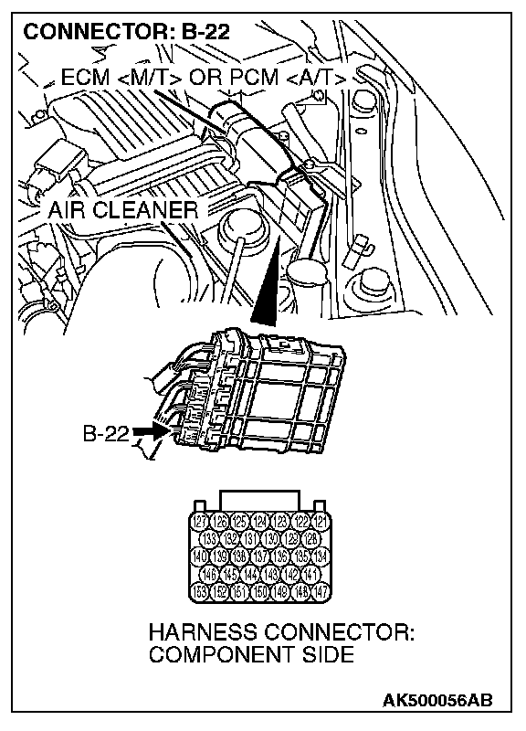STEP 6. Check harness connector B-22 at ECM