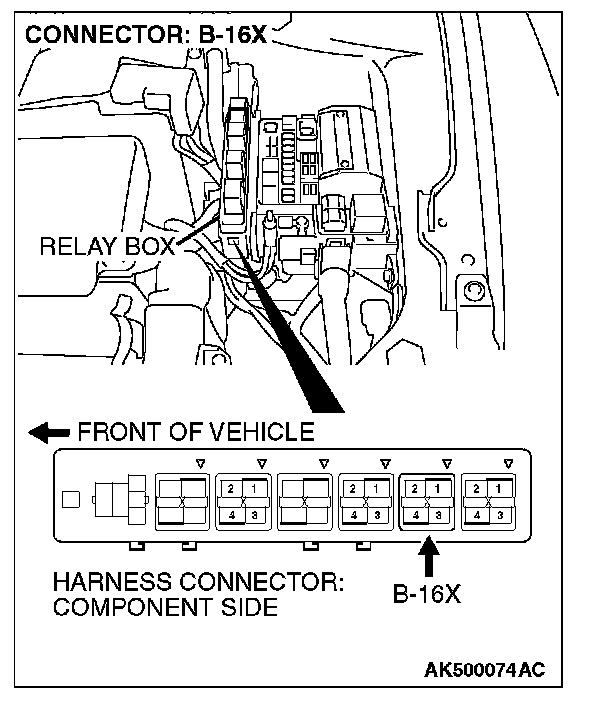 STEP 4. Check harness connector B-16X at MFI relay for damage.