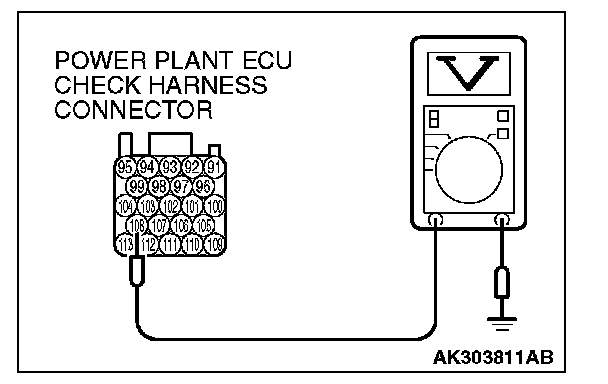 3. Measure the voltage between terminal No. 108 and ground.