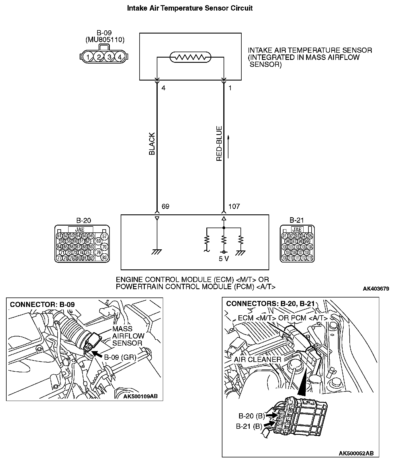 1. Disconnect the intake air temperature sensor connector B-09.