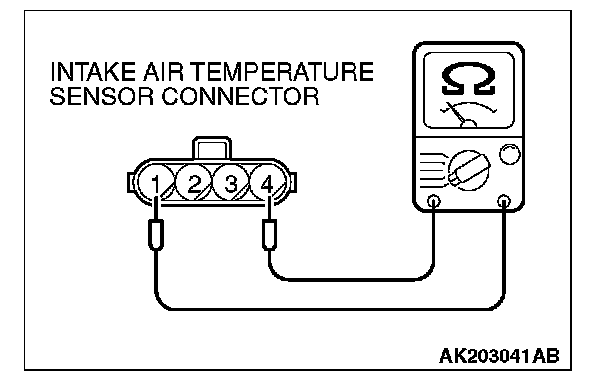 2. Measure the resistance between intake air temperature sensor side connector terminal No. 1 and No. 4.