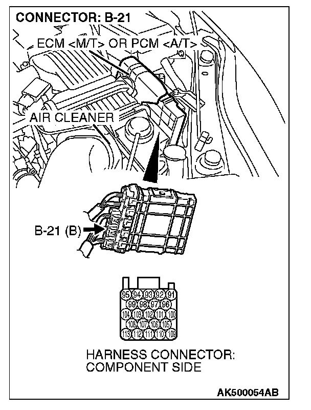 STEP 7. Check harness connector B-21 at ECM