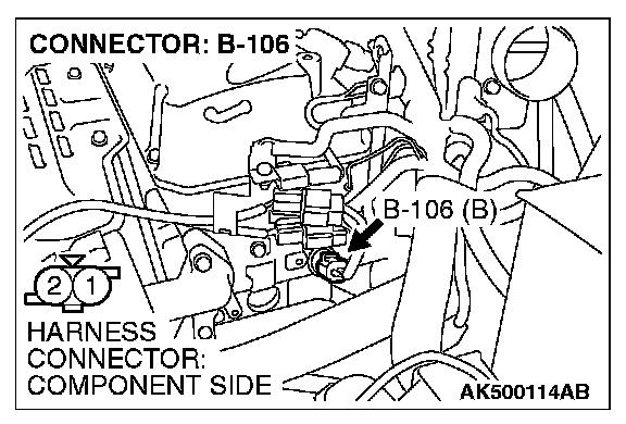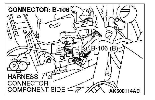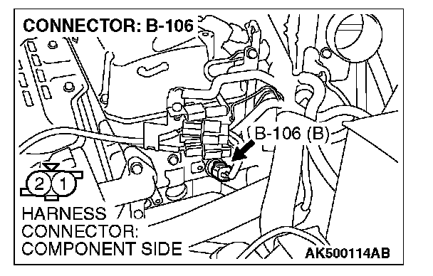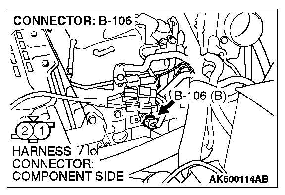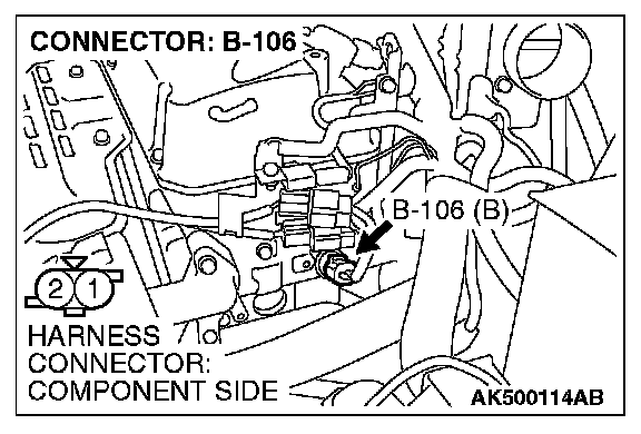 STEP 3. Check harness connector B-106 at the engine coolant temperature sensor for damage.