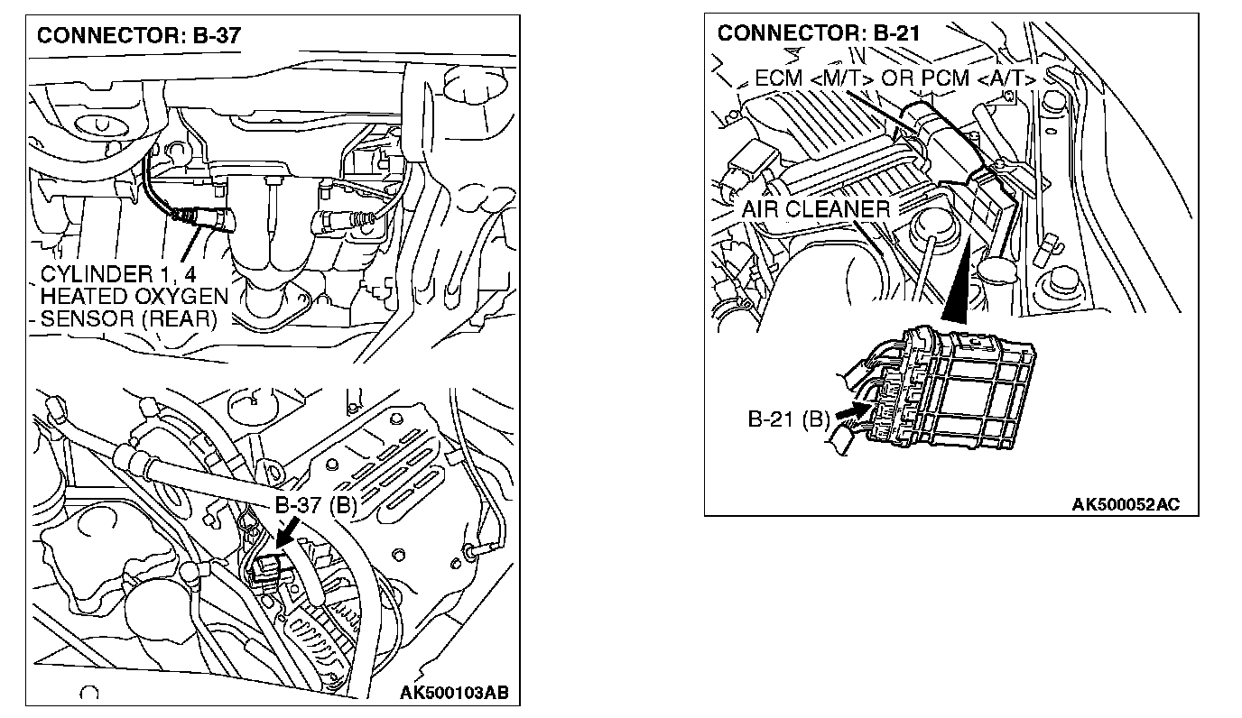 3. Set scan tool MB991958 to the data reading mode for item AD, Cylinder 1, 4 Heated Oxygen Sensor (rear).