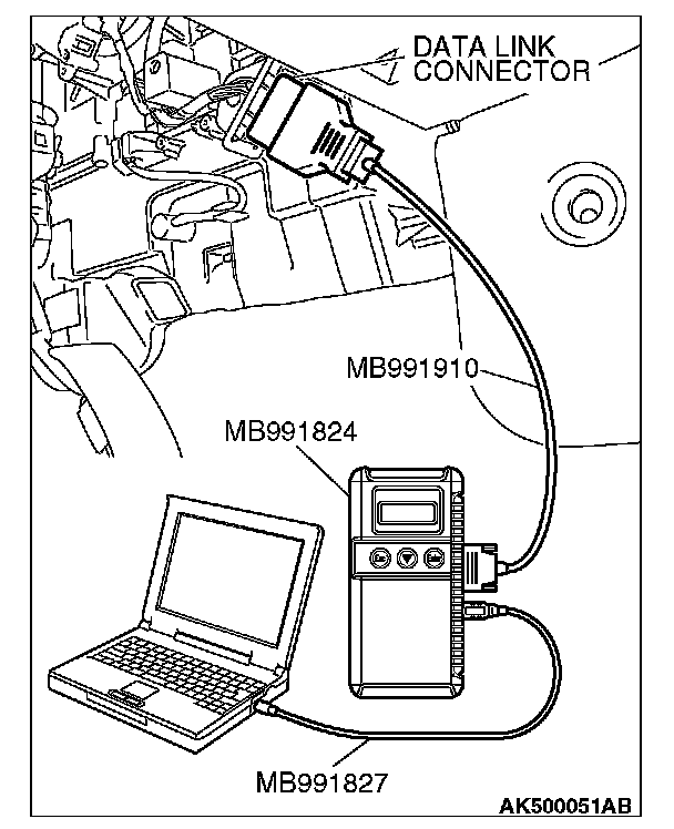 1. Connect scan tool MB991958 to the data link connector.