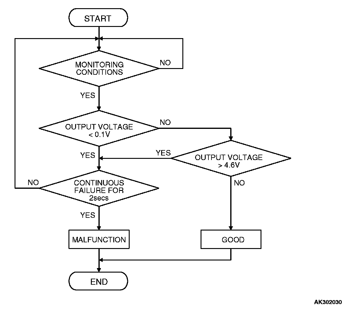 - Sensor output voltage has continued to be 0.1 volt or lower for 2 seconds.