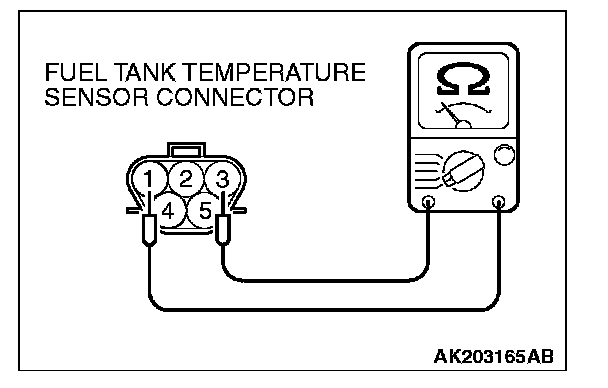 2. Measure the resistance between terminal No. 1 and No. 3 of the fuel tank temperature sensor.