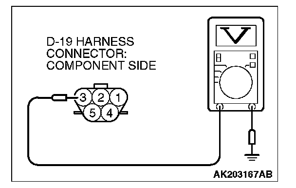 STEP 4. Check the sensor supply voltage at fuel tank temperature sensor harness side connector D-19.