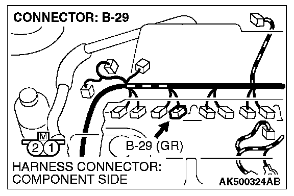 1. Disconnect connector B-29 and measure at the harness side.
