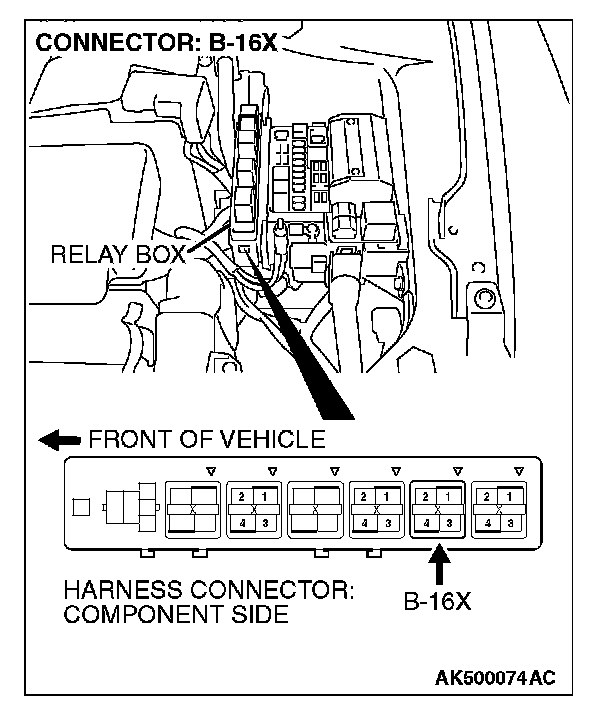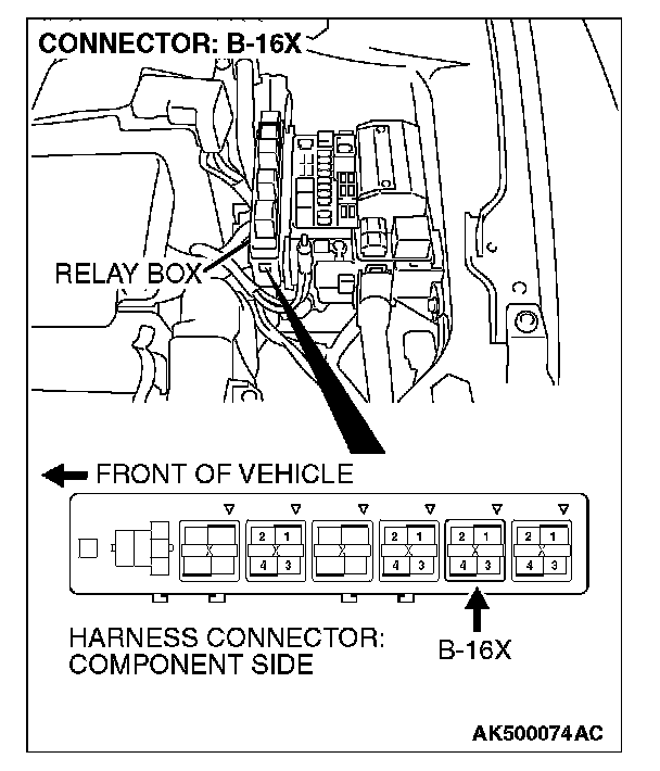 STEP 5. Check harness connector B-16X at MFI relay for damage.