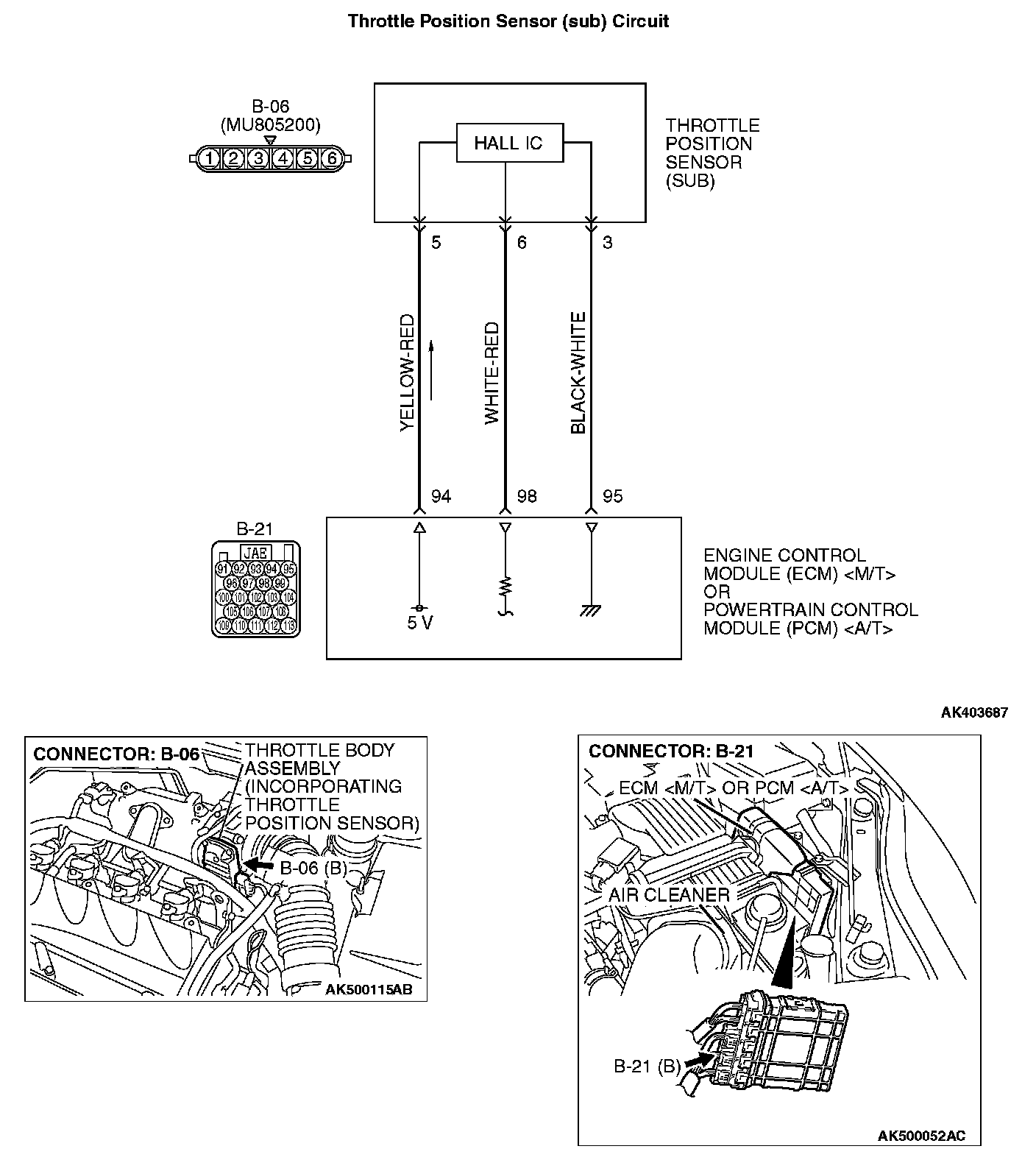 - A 5-volt power supply is applied on the throttle position sensor (sub) power terminal (terminal No. 5) from the ECM