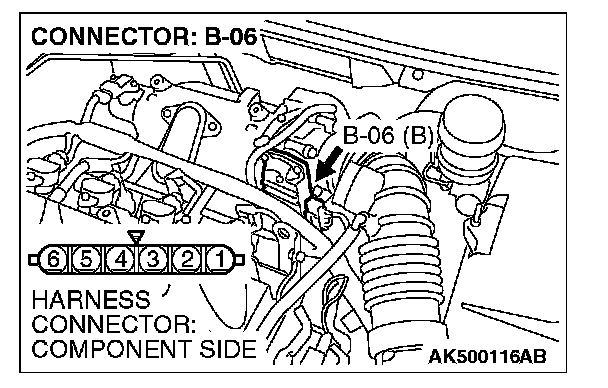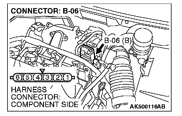 1. Disconnect the connector B-06 and measure at the harness side.
